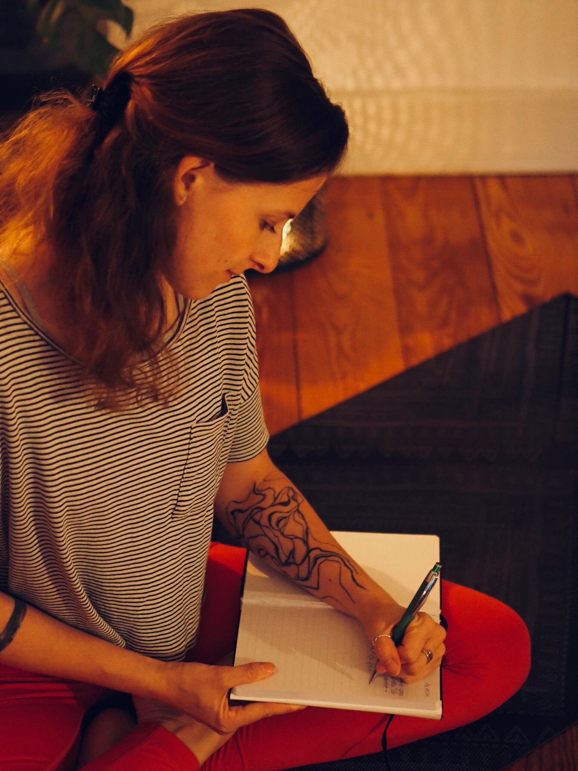 Eine sanfte Runde Hatha Yoga mit Yin Yoga Elementen stimmt dich körperlich ein, sorgt für Entspannung, lenkt den Fokus ganz sanft in dich hinein und lässt dich bei dir ankommen. Dadurch öffnet sich ein Raum, in dem du anschließend durch achtsame und kreative Schreibaufgaben und Journaling-Impulse Worte, Sätze und Geschichten in dir finden kannst.